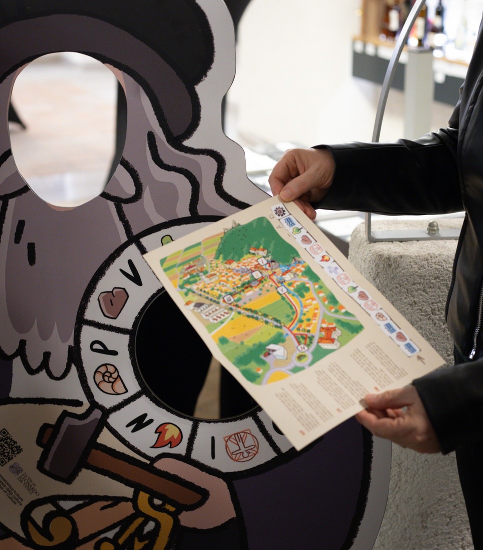 The trail begins and ends in the Leonardo da Vinci Room, located within the Lanthieri Cellar wine shop and the Vipava Tourist Information Centre. Here you can pick up maps that will help you find the points throughout Vipava. At each point you will need a phone to scan a code and discover Da Vinci’s inventions. You will place stickers with symbols onto your map at each point. Once you have discovered all the points and placed all the stickers, return to the Leonardo Room and use the mirror decoder held by Leonardo to decipher the final message. For extra fun, you can take a photo with Leonardo’s photo stand-in and, for a moment, become Leonardo da Vinci yourself.