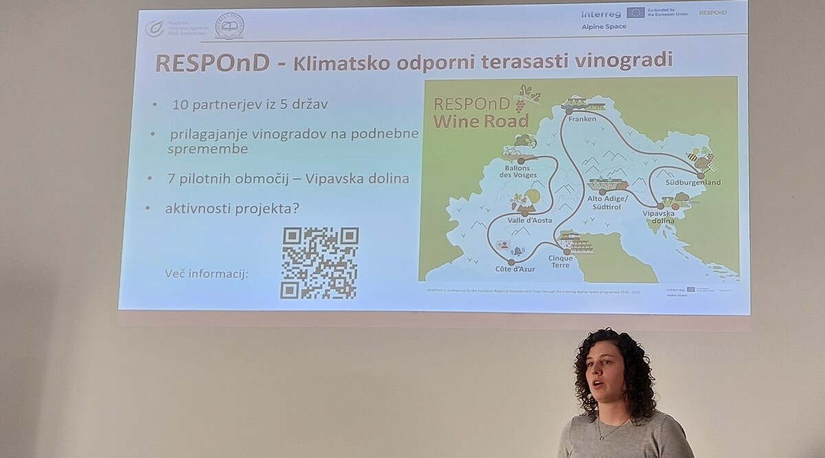 V sredo, 5. novembra 2025, smo se udeležili delovnega sestanka projekta RESPOnD z naslovom Klimatsko odporni terasasti vinogradi, ki sta ga organizirala projektna partnerja Regijska razvojna agencija ROD Ajdovščina in Univerza v Novi Gorici. Vodilni partner projekta RESPOnD je Eurac Research, raziskovalni inštitut iz Bolzana, pri projektu pa poleg že naštetih sodeluje še sedem partnerjev iz Italije, Francije, Avstrije in Nemčije.