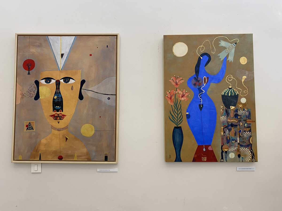 Razstava razkriva bogat in raznolik opus, v katerem izstopa značilen figuralni imaginarij, še posebej motiv ikonične ženske figure. Ta nastopa kot simbol in arhetip ter odpira razmislek o ženski, njenem notranjem svetu in položaju v družbi. Posebno mesto zavzema »modra ženska«, osrednji motiv novejšega cikla, ki ponazarja življenje, duhovnost in povezanost z naravo.