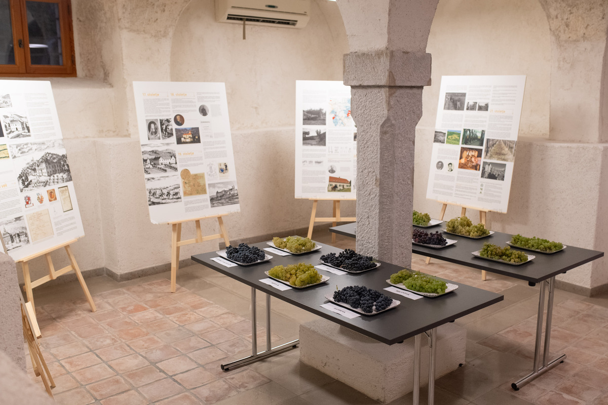 V vinoteki Lanthierijev hram je do konca oktobra na ogled razstava »Srečna dežela je, vino rodi …«, ki na petih razstavnih panojih pripoveduje zgodbo o bogati zgodovini vinogradništva in vinarstva na Vipavskem.