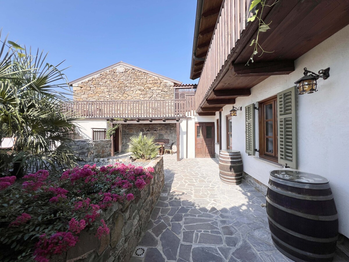 Garden: Outside dining area, BBQ, Jacuzzi and terraces with spectacular views to vineyards, and mountain Nanos.
