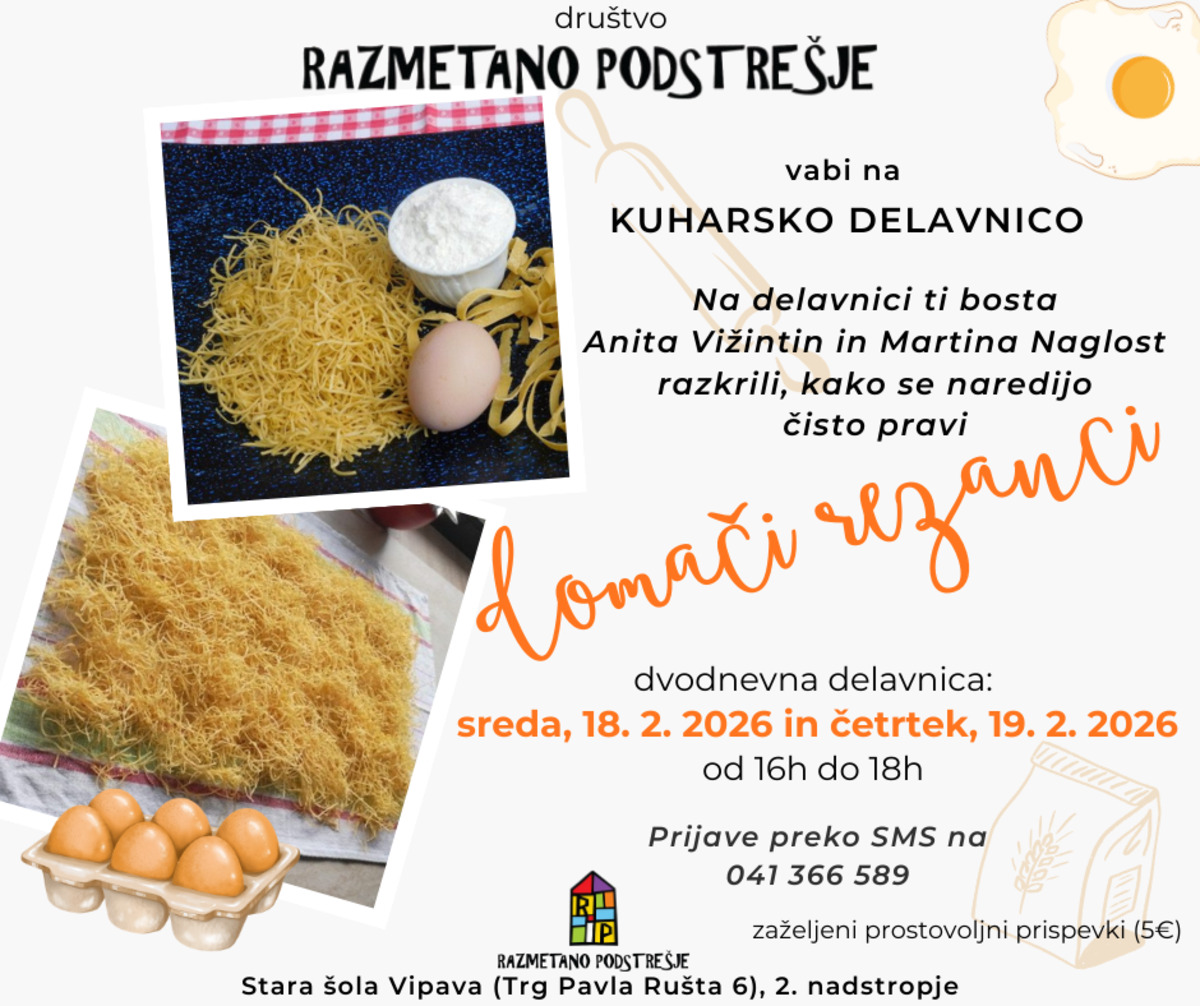Na delavnici ti bosta Anita Vižintin in Martina Naglost pokazali, kako nastanejo čisto pravi domači rezanci – tanki, zlati in pripravljeni za nedeljsko juho.